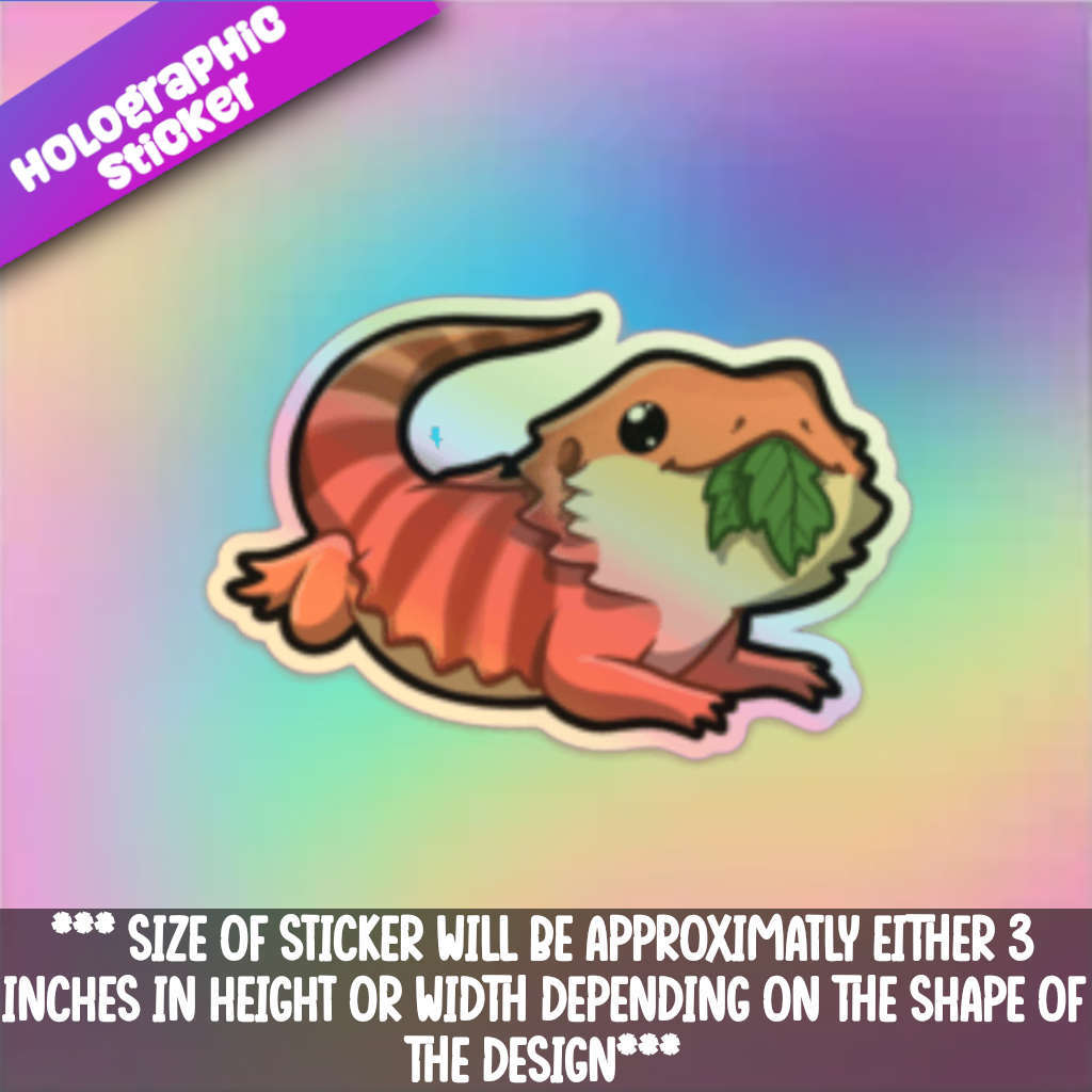 Bearded Dragon with Leaf Holographic Sticker