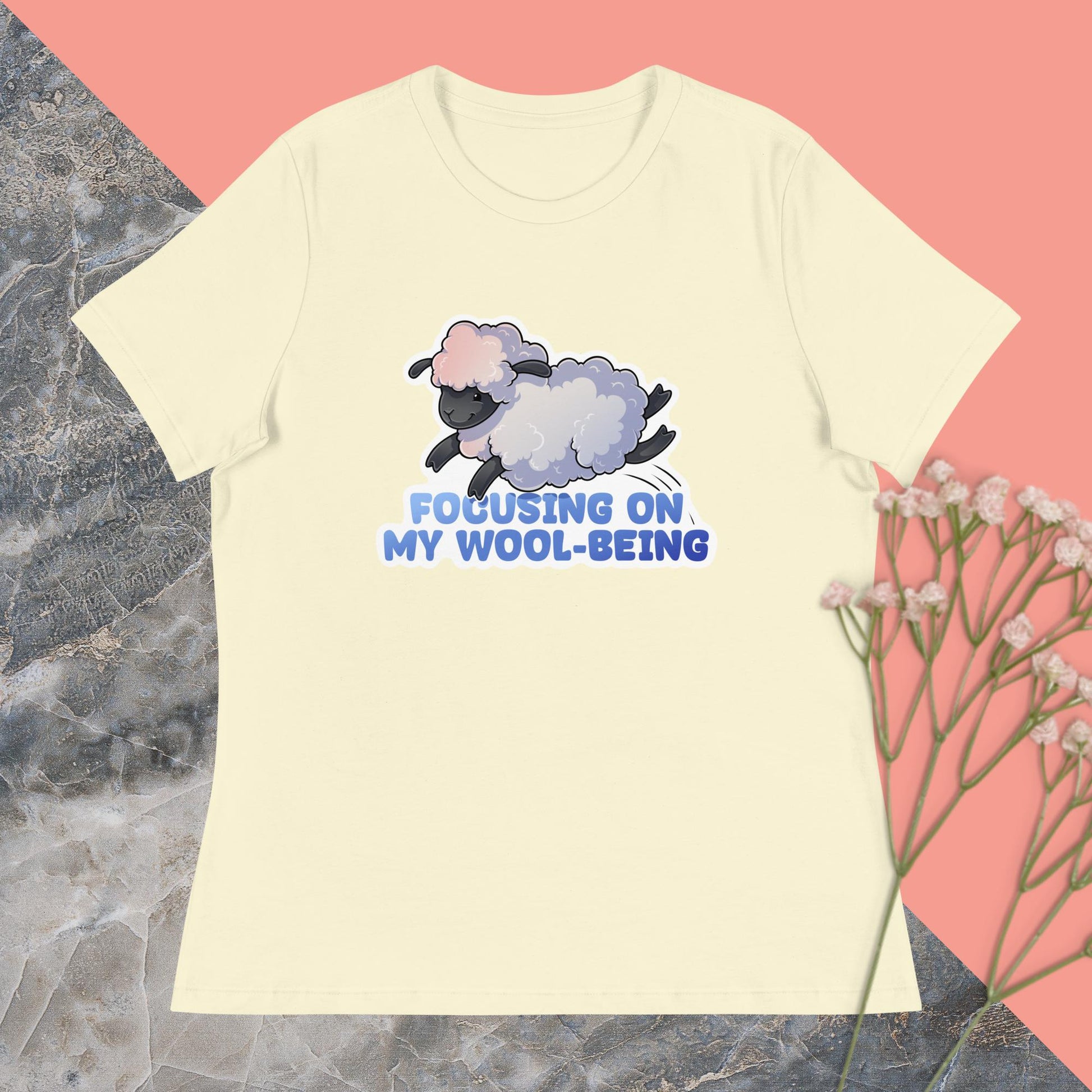 This listing is for a "Focusing on my Wool-Being" T-shirt