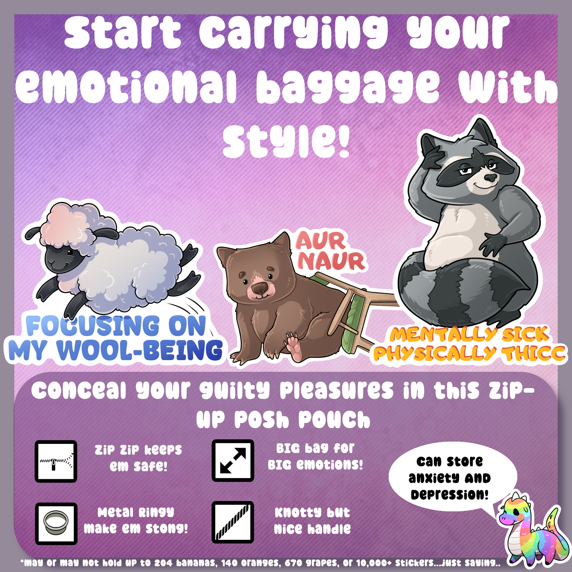 Its time to carry your emotional baggage in style! Our beautiful bags are durable and stylish!